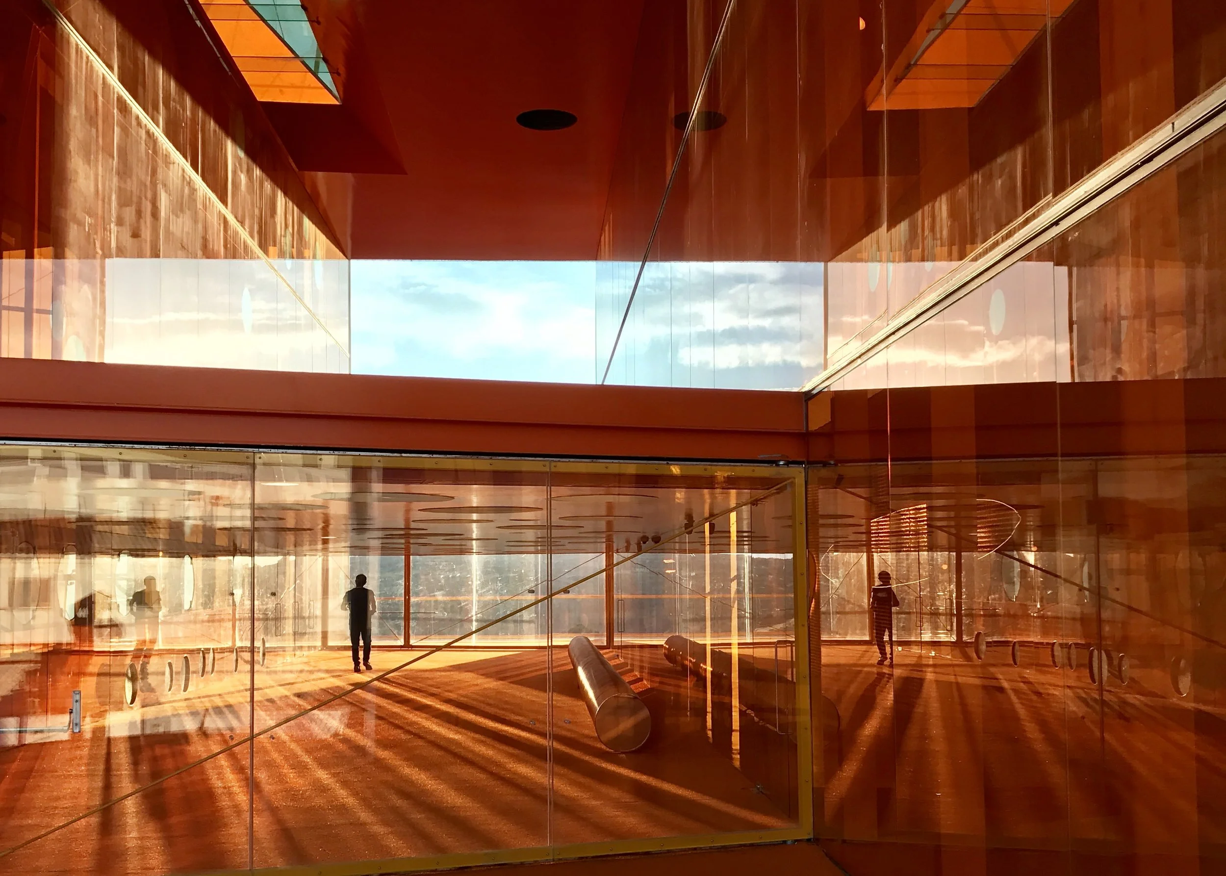 The Plasencia Auditorium and Congress Center in Cartagena, Spain by Selgascano Architects, 2017. This project is an example of contemporary interior design and architecture that articulates Gyorgy Kepes’ “explosion of space.” The transparent walls of colored plexiglass offer a dynamic and cinematographic sequence offering various points of view. Ramps, apertures, and stairs dissolve boundaries between internal and external space. Photo Courtesy of I. Manluenda / E. Encabo.